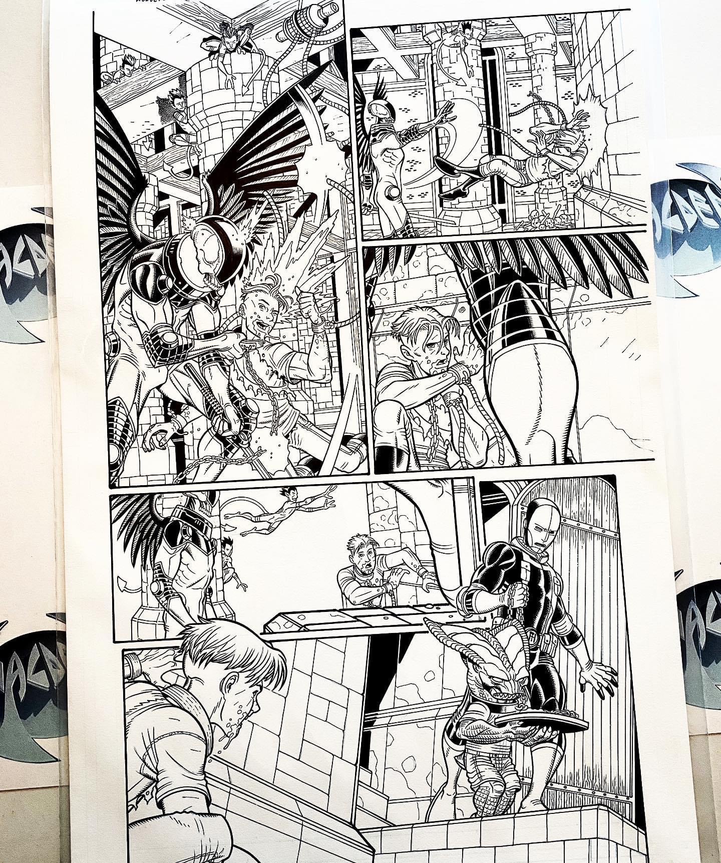 Original art from  WOLVERINE AND THE X-MEN issue 32. Pencils by  Nick Bradshaw, inks by Walden Wong